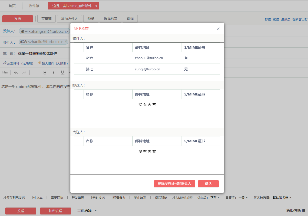 TurboEx邮件系统此次发布的Web管理S/MIME证书功能,彻底简化升级了S/MIME证书的应用便利度: